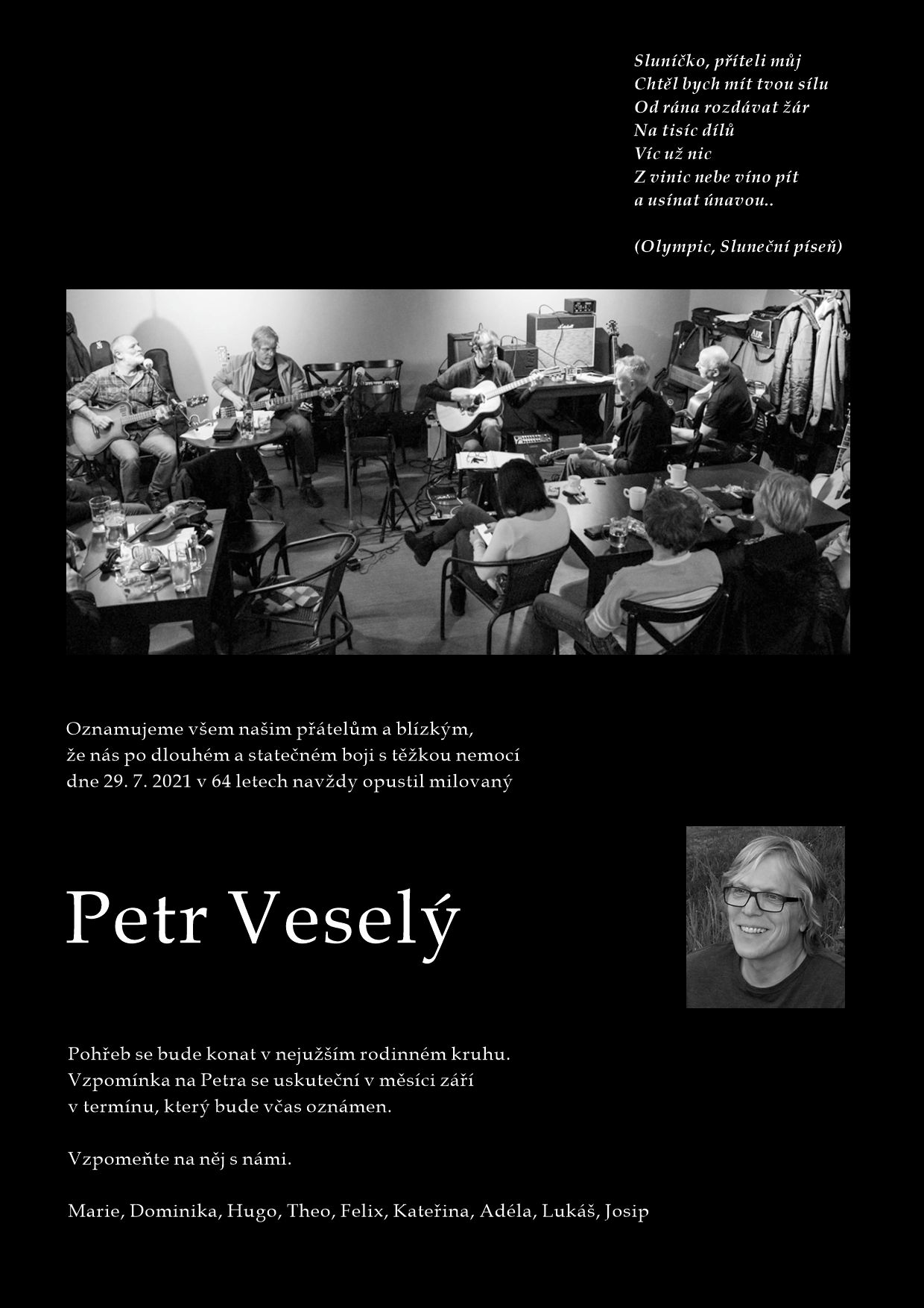 Petr nás bohužel po těžké nemoci ve čtvrtek 29. července 2021 opustil.